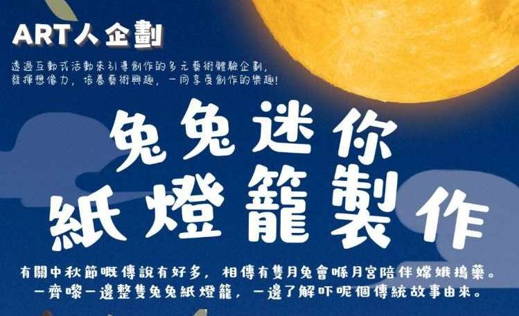大家好~ 又就快到中秋節喇🌕🐇一齊嚟整個迷你紙提燈應下節啦🏮 Art人企劃 – 兔兔迷你紙燈籠製作 💬內容:相傳有隻月兔會喺月宮陪伴嫦娥搗藥。一齊嚟一邊整卡通兔兔迷你紙燈籠,一邊了解吓呢個 […]
